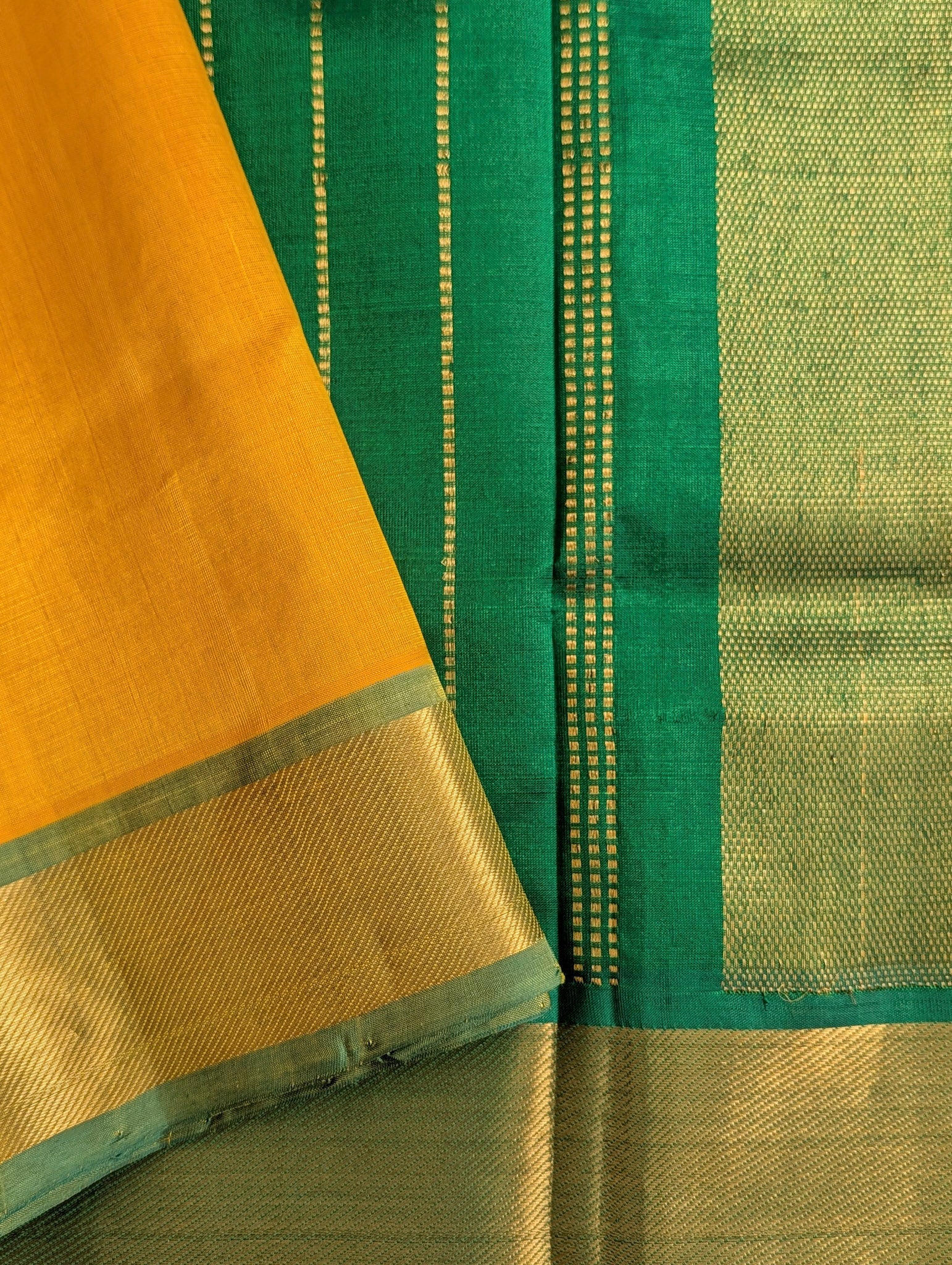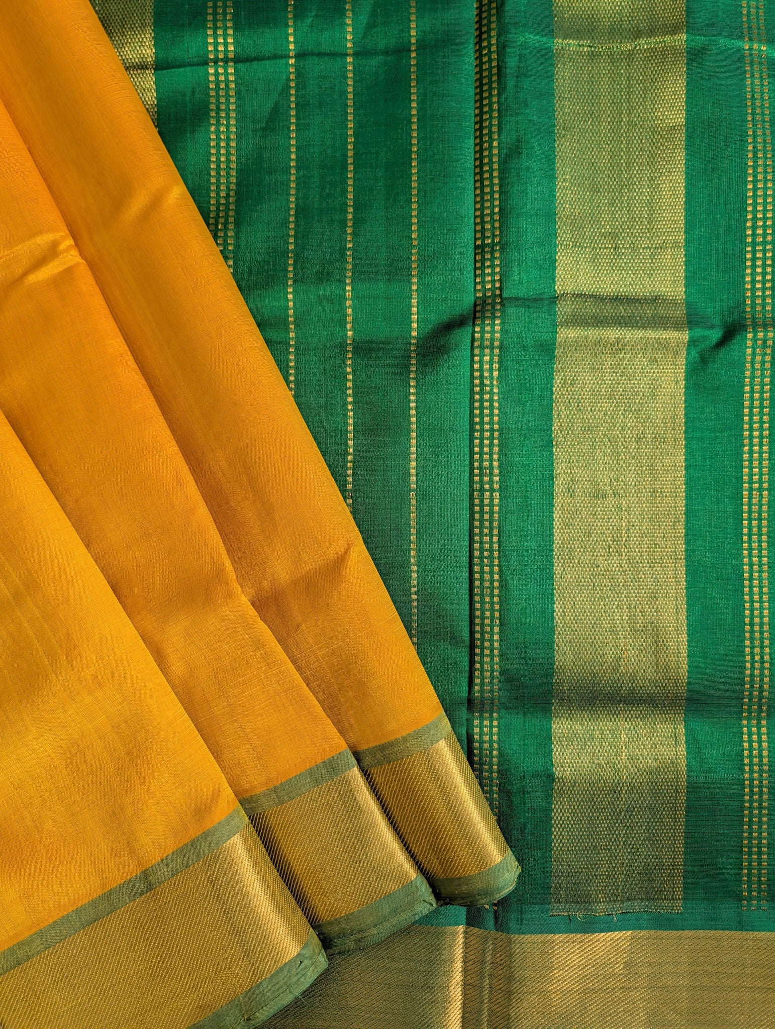 Golden Yellow with Green Pure Kanchi Silk Cotton Saree
