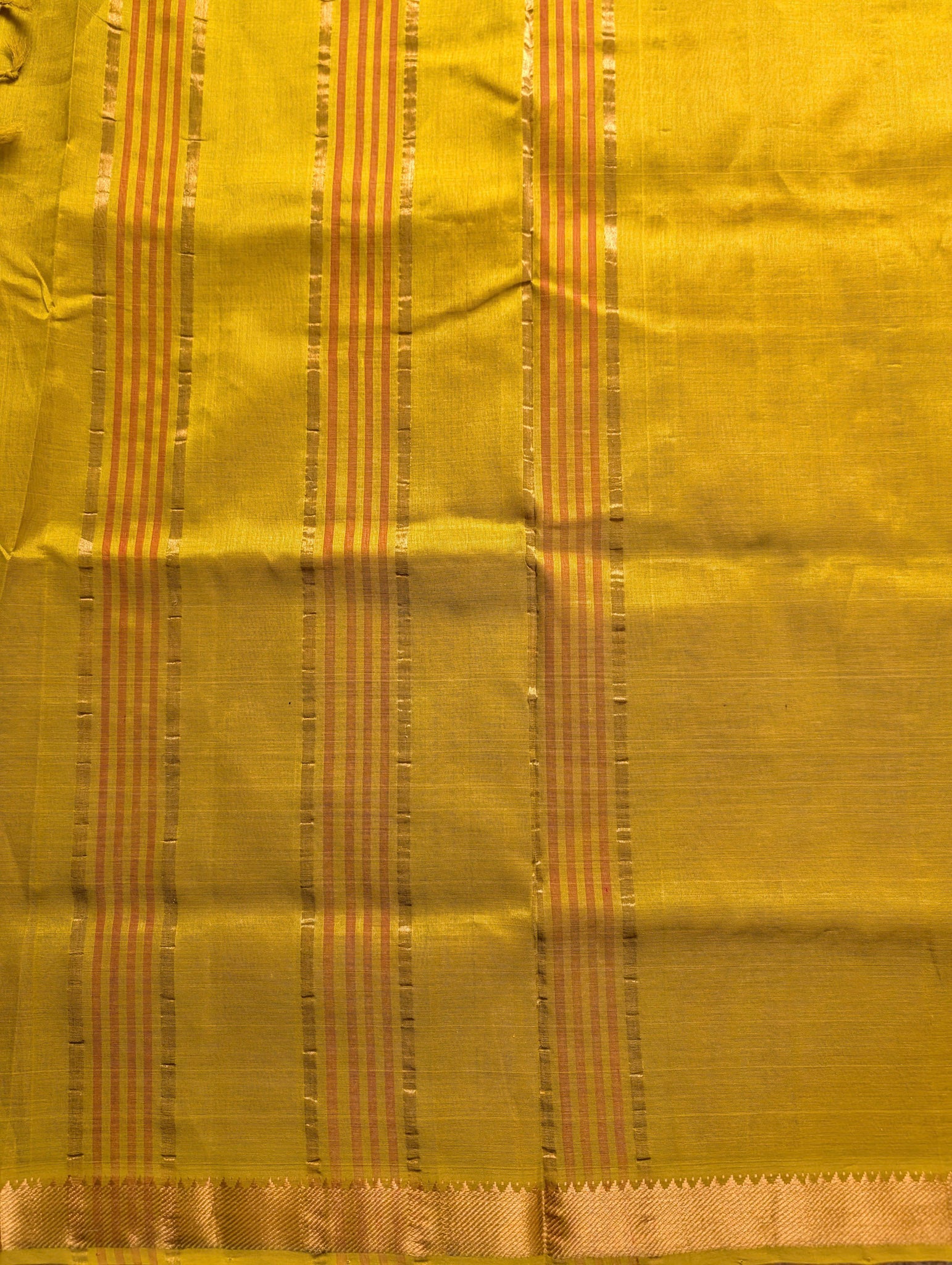 Kumkum Red with Turmeric Yellow Pure Kanchi Silk Cotton Saree