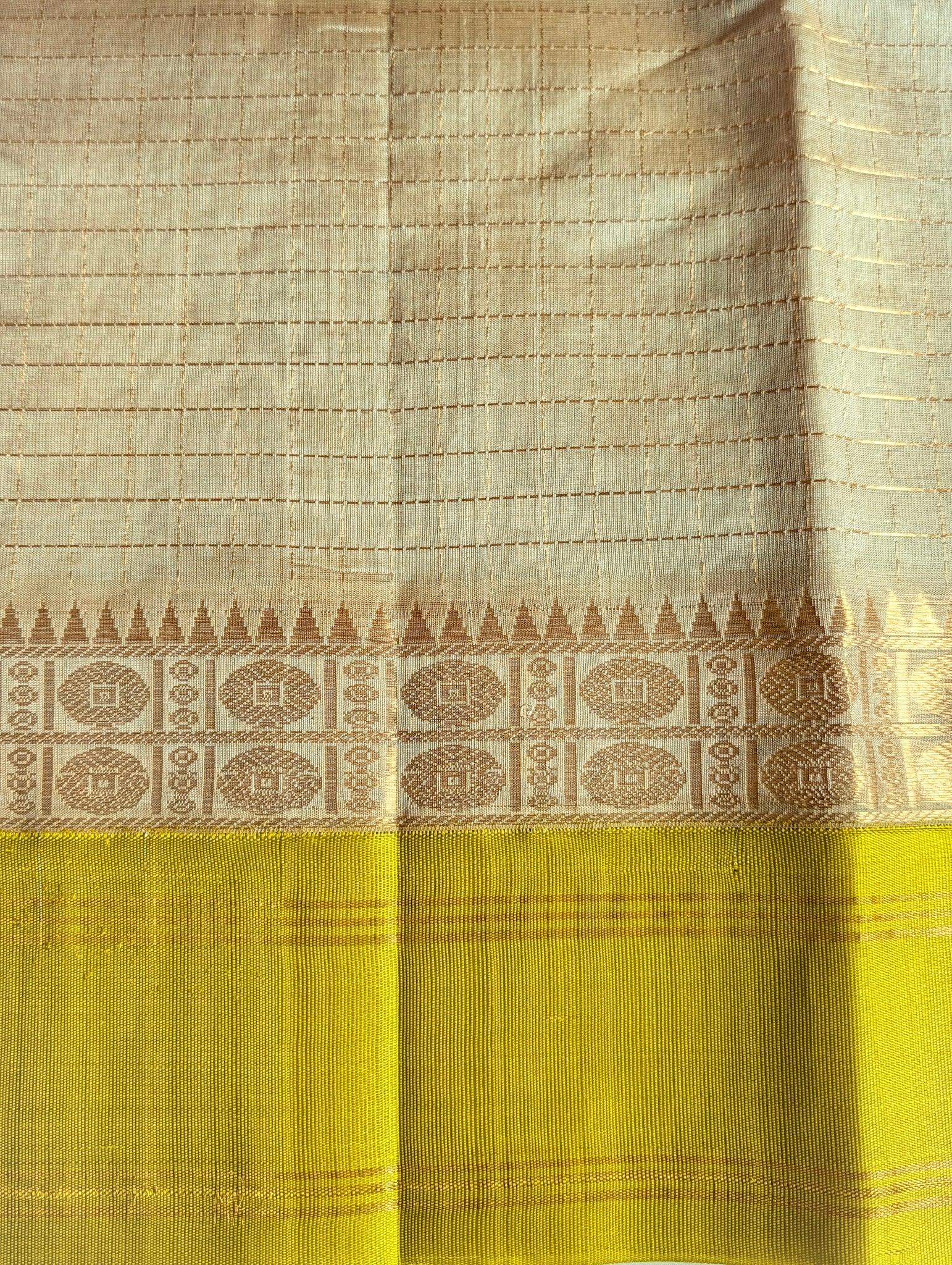 Beige with yellow Pure Kanchi Silk Cotton Saree