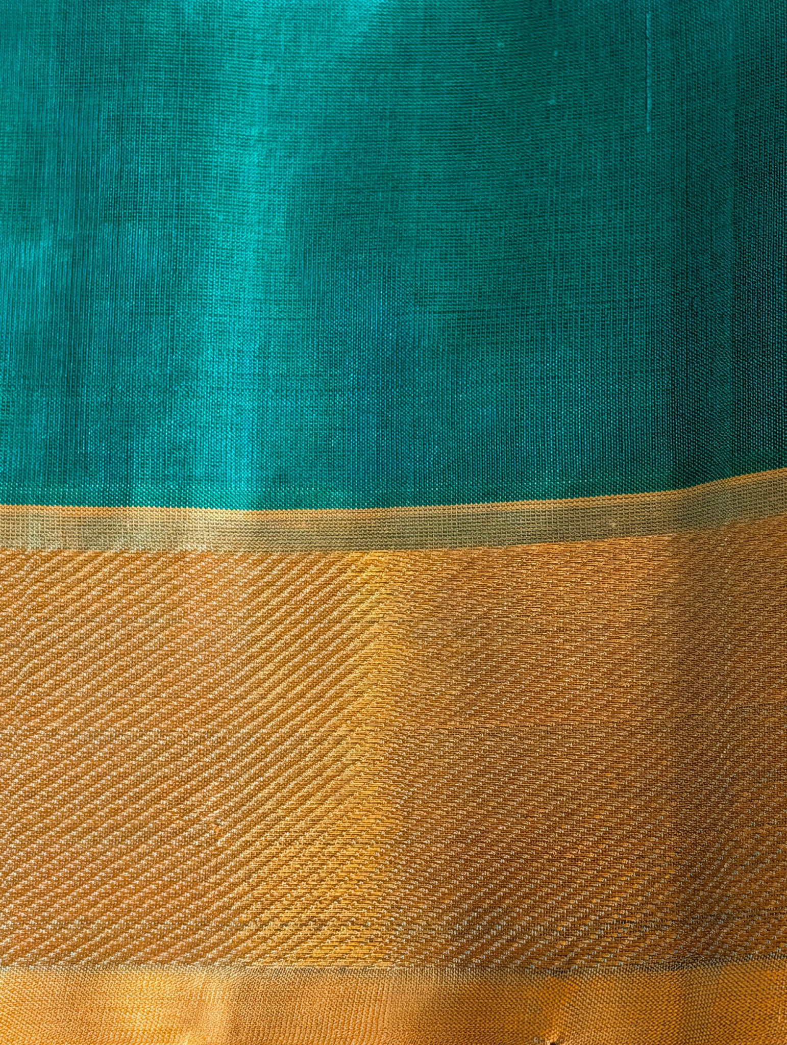 Peacock green with yellow Pure Kanchi silk cotton