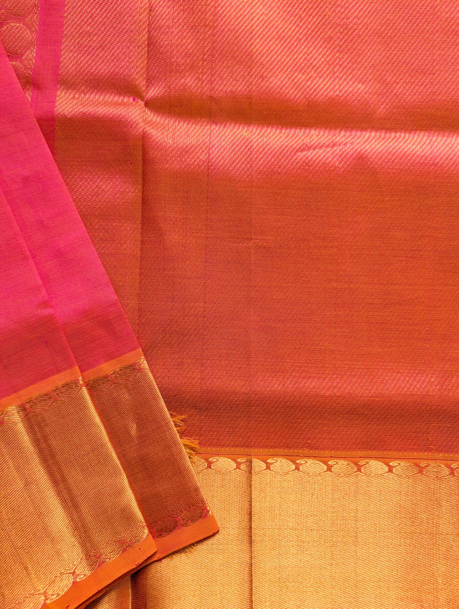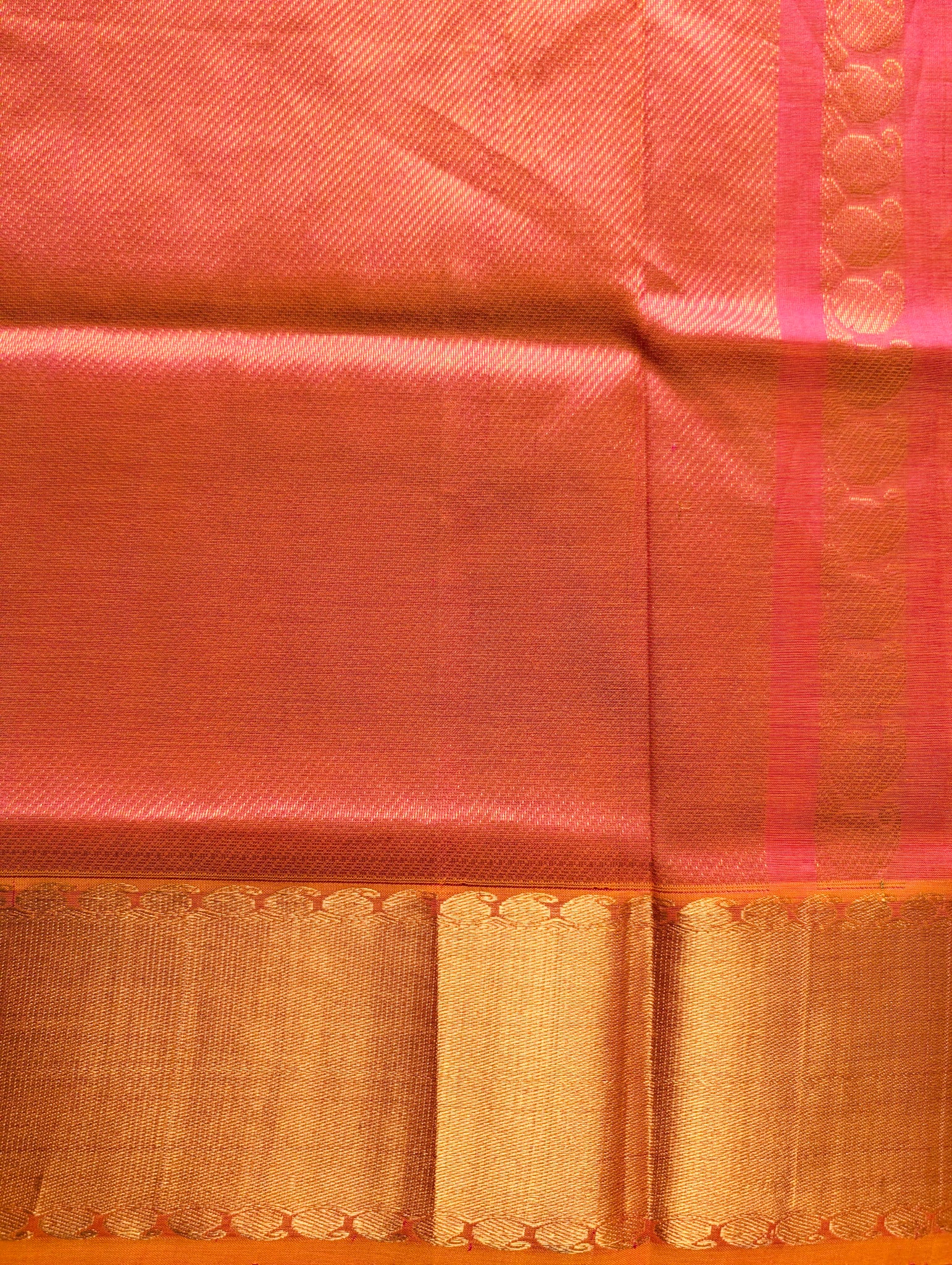 Sunset Orange with mango motifs Pure Kanchi silk cotton saree