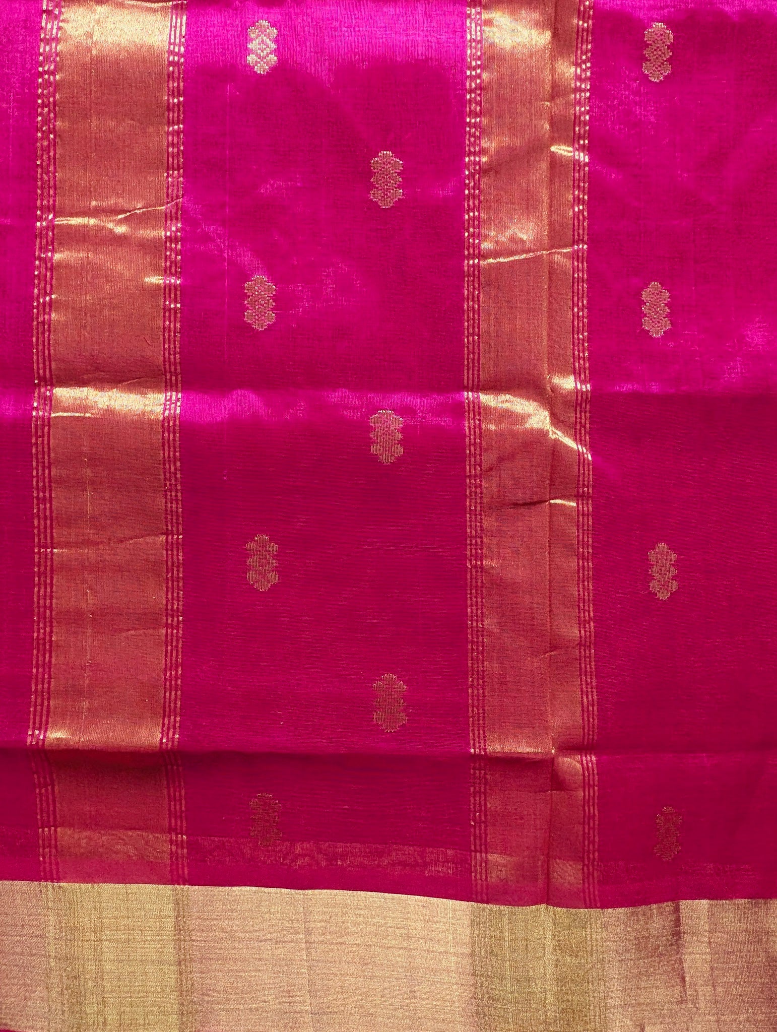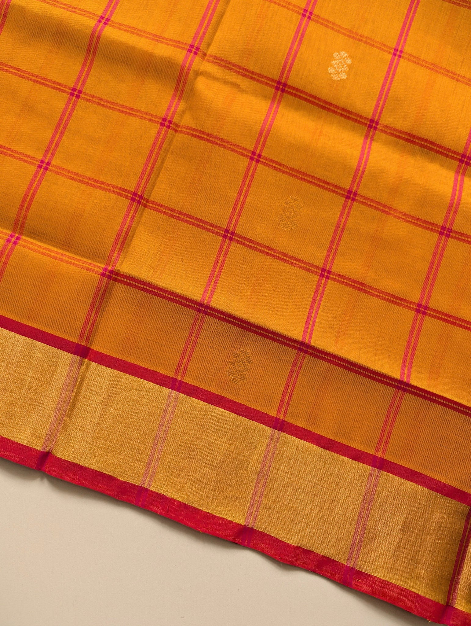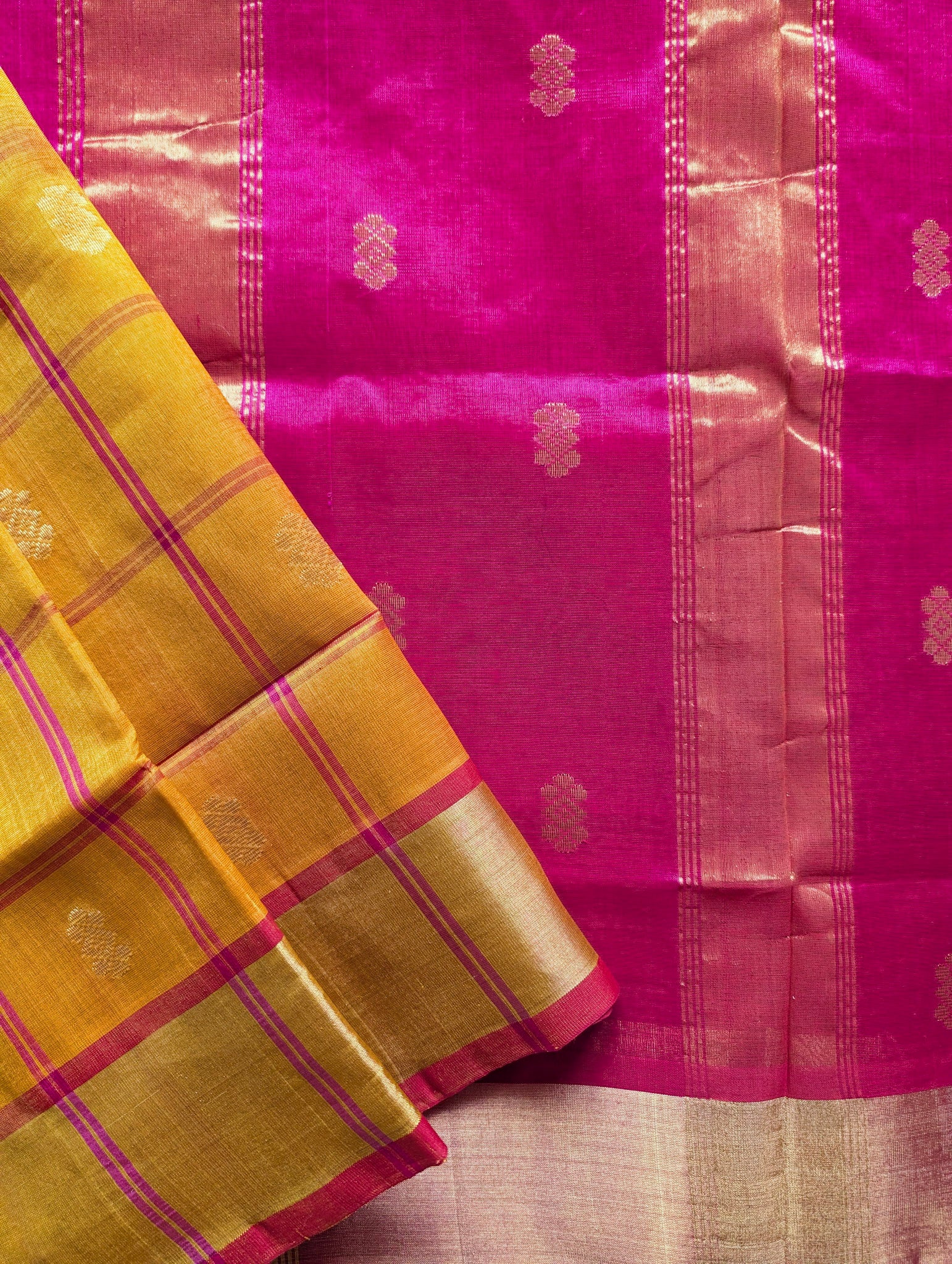 Yellow and Pink checks with Butta Pure Kanchi Silk Cotton Saree